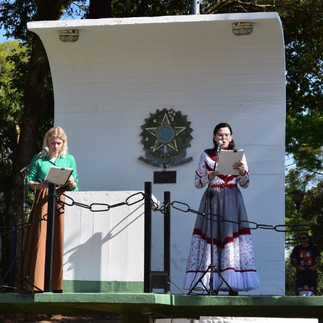 O desfile abriu com a apresentação da Guarda Municipal, recebimento da Chama Crioula e hasteamento das bandeiras.